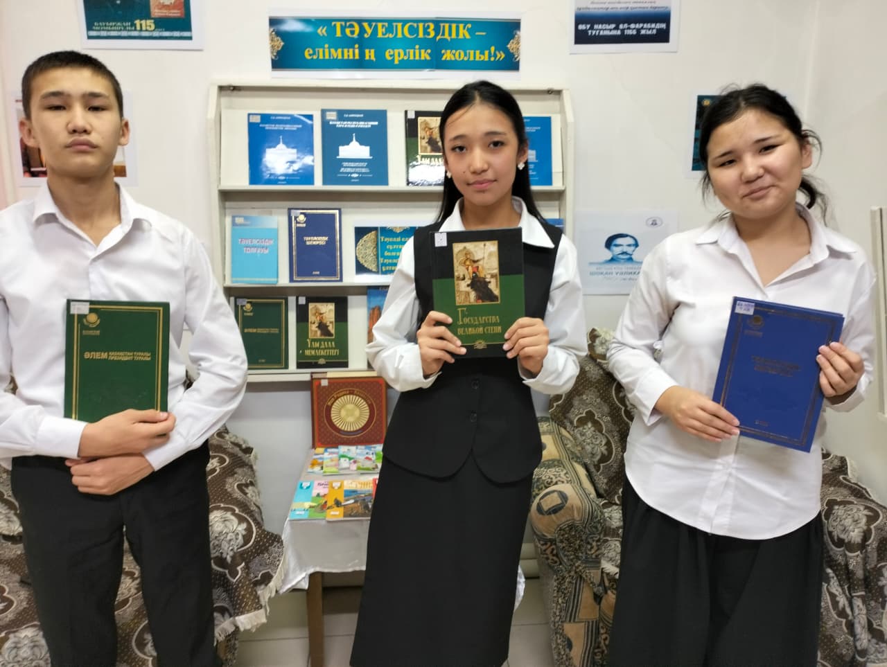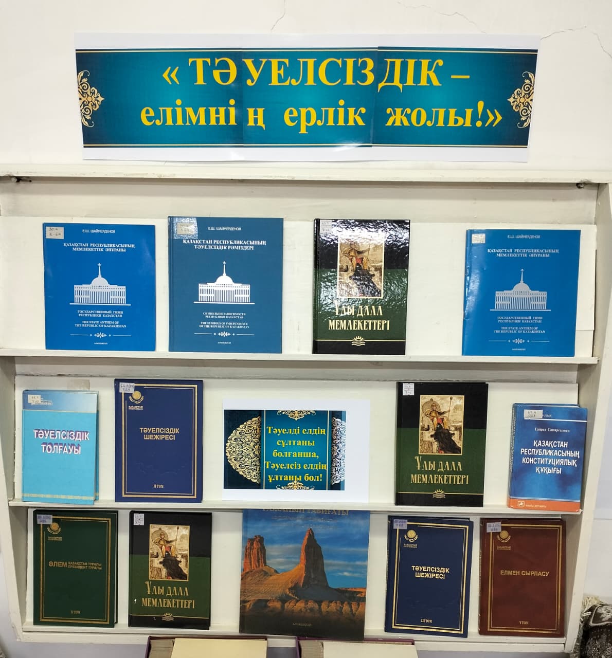 Кітап көрмесіне тарихымызды таразылап, еліміздің Тәуелсіздікке жетуде жасаған үлкен қадамдары, өнегеге толы ерлік істеріне баға беретін тәуелсіздік жылдарында халқымыздың басынан өткен сан қилы оқиғалар мен тағдырлар тоғысына арқау болған кітаптармен толықтырылды. Тәуелсіз жас мемлекет- заманауи Қазақстанның атын әлемге танытып жүрген тұлғалар туралы және еліміздің тәуелсіздік алған сәтінен бастап бүгінге дейінгі жүріп өткен жолы туралы еңбектері және тәуелсіздік жылдарында баспадан шыққан әдеби туындыларымен қамтылды. Кітап көрмесі оқырмандарға таныстырылды.