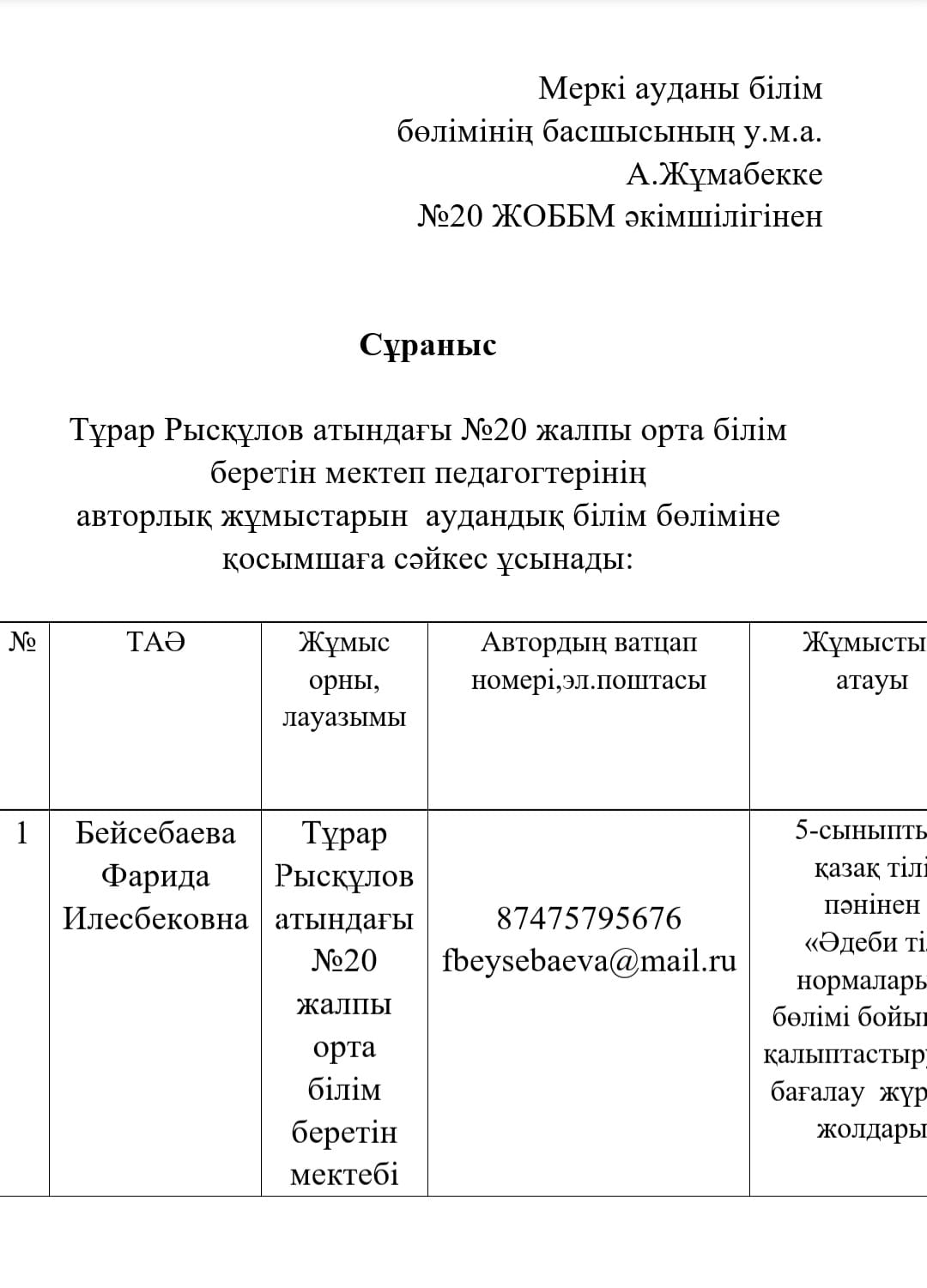 "Бастау" оқу-ағартуды қолдау қоғамдық қоры ұйымдастырған жалпы орта білім беретін мектептерде пәндер бойынша олимпиадасы http://20-merki.mektebi.kz/o-detskom-sade/malmder/3363-bastau-ou-aartudy-oldau-oamdy-ory-jymdastyran-zhalpy-orta-blm-beretn-mektepterde-pnder-bojynsha-olimpiadasy.html http://20-merki.mektebi.kz/o-detskom-sade/malmder/3363-bastau-ou-aartudy-oldau-oamdy-ory-jymdastyran-zhalpy-orta-blm-beretn-mektepterde-pnder-bojynsha-olimpiadasy.html ]]> admin Mon, 24 Nov 2025 14:53:42 +0600 "Алтын сақа" олимпиадасының аудандық кезеңі өткізілді. http://20-merki.mektebi.kz/o-detskom-sade/malmder/3354-altyn-saa-olimpiadasyny-audandy-keze-tkzld.html http://20-merki.mektebi.kz/o-detskom-sade/malmder/3354-altyn-saa-olimpiadasyny-audandy-keze-tkzld.html ]]> admin Fri, 21 Nov 2025 14:01:53 +0600 ауданаралық педагогикалық тәжірибені таратудың әдістемелік алаңында “ Бастауыш сынып” секциясында іс- тәжірибесімен бөліскені үшін Тұрар Рысқұлов атындағы 20 жалпы орта білім беретін мектебінің бастауыш сынып мұғалімі Сарсебаева Галия Абдрамановнаға http://20-merki.mektebi.kz/o-detskom-sade/malmder/3298-audanaraly-pedagogikaly-tzhriben-taratudy-dstemelk-alaynda-bastauysh-synyp-sekcijasynda-s-tzhribesmen-blsken-shn-trar-ryslov-atynday-20-zhalpy-orta-blm-beretn-mektebn-bastauysh-synyp-malm-sa.html http://20-merki.mektebi.kz/o-detskom-sade/malmder/3298-audanaraly-pedagogikaly-tzhriben-taratudy-dstemelk-alaynda-bastauysh-synyp-sekcijasynda-s-tzhribesmen-blsken-shn-trar-ryslov-atynday-20-zhalpy-orta-blm-beretn-mektebn-bastauysh-synyp-malm-sa.html