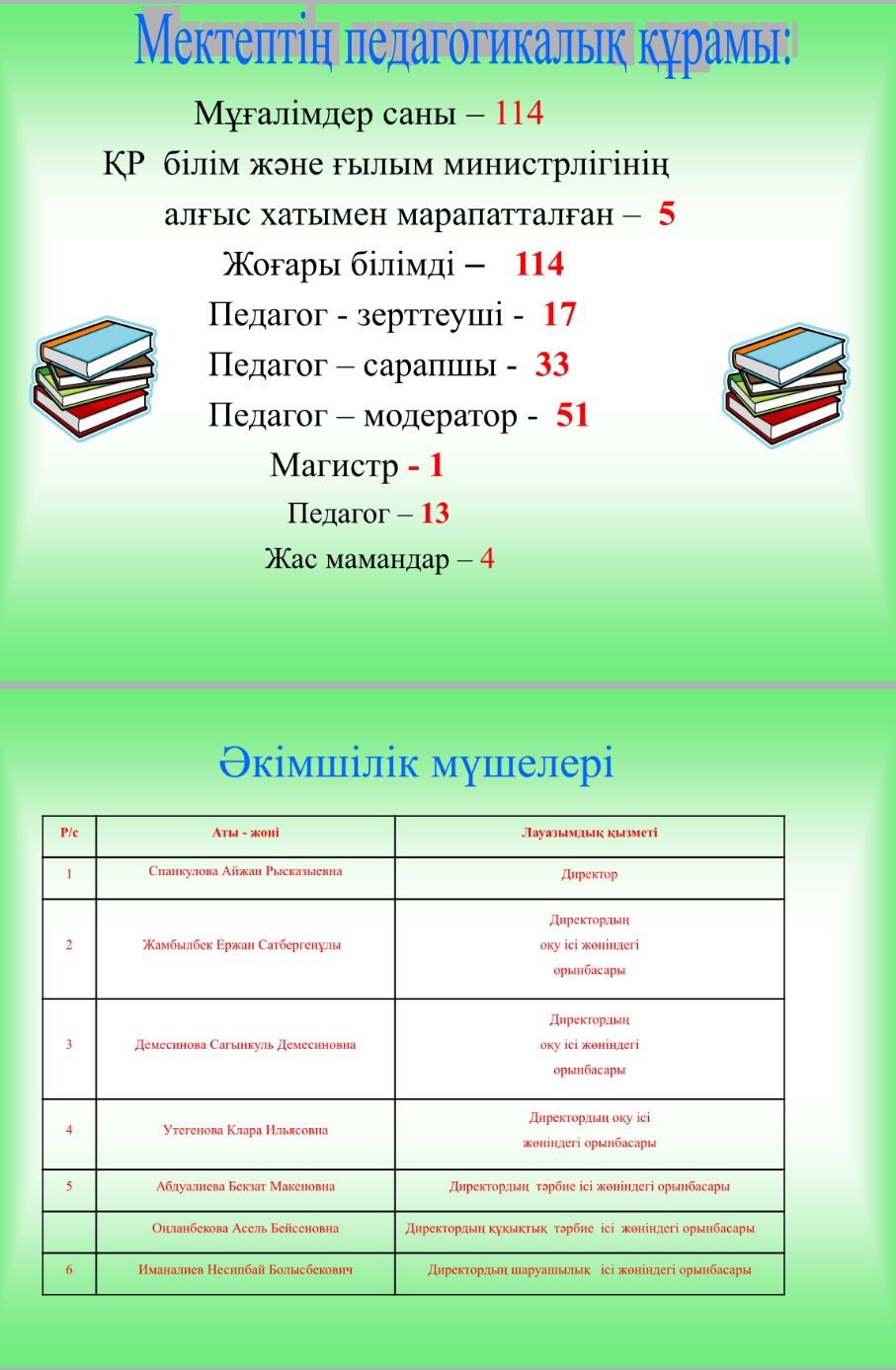 2021 жылдан бері мектеп директоры Мырзаханов Нұрдаулет Талантұлы