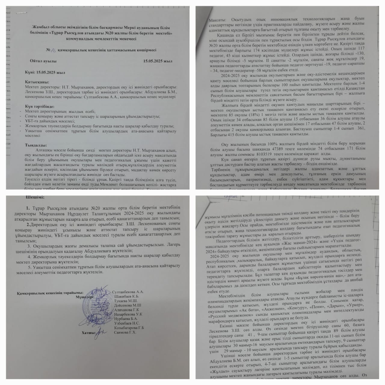 Board of Trusteesінің отырысы 15.05.2025ж » СШ №20 им. Т.Рыскулова