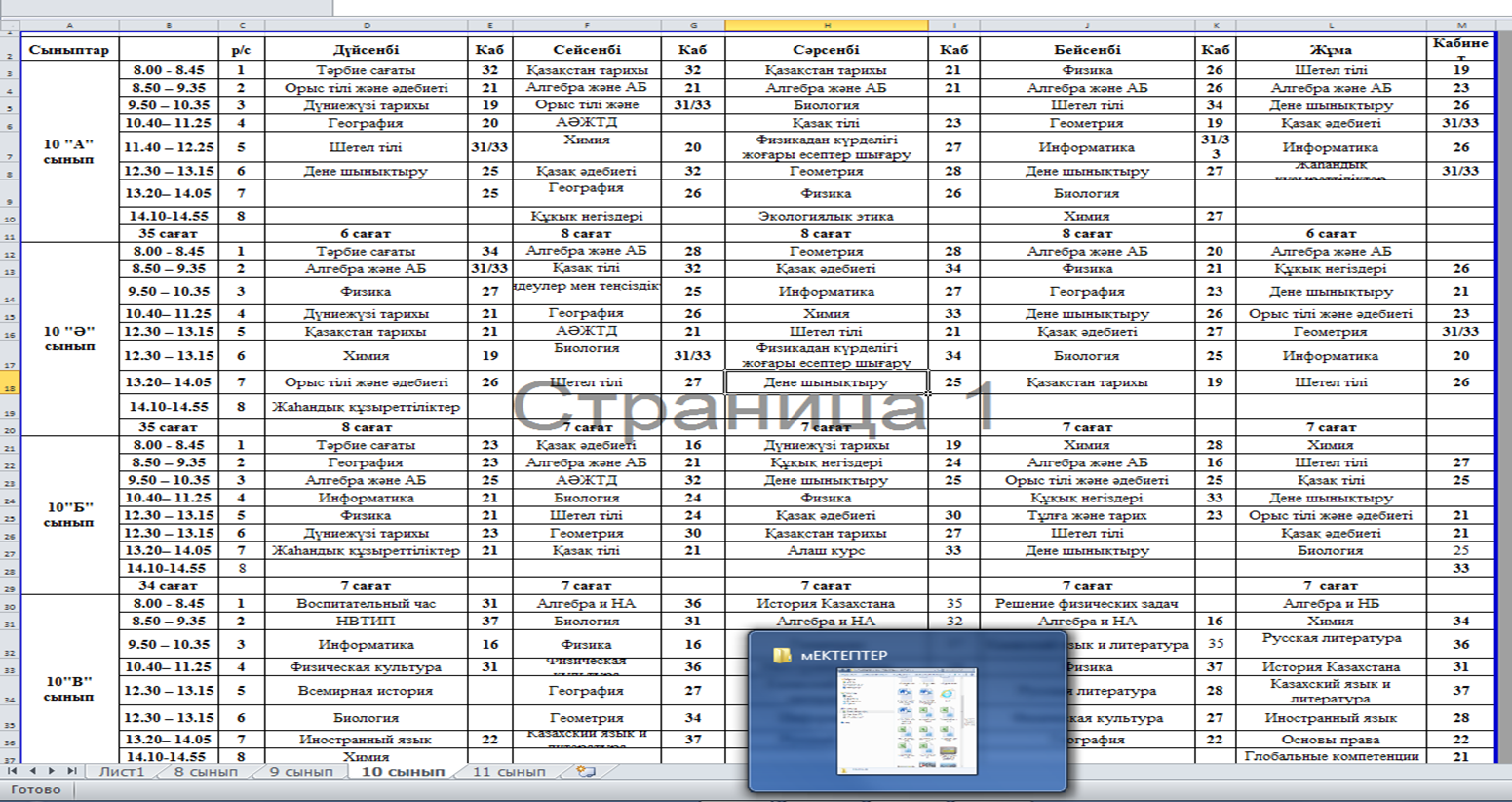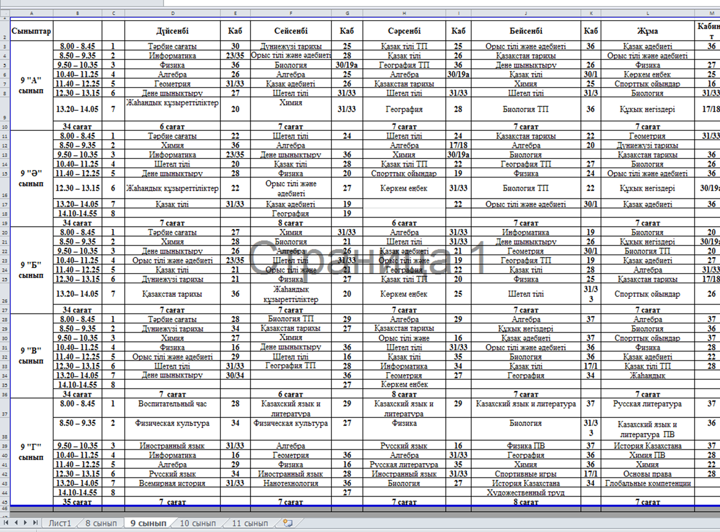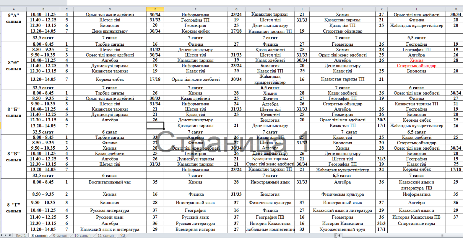 » » » schedule of lessons 8-11 сынып 2025-2026ж