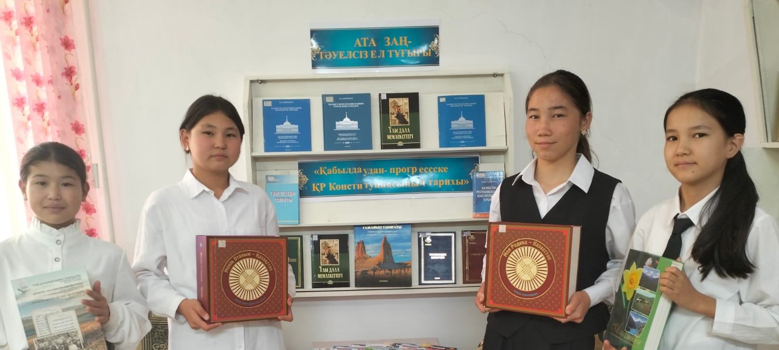 28.08 .2024 ж. мектеп кітапханасында«Ата заң – тәуелсіз ел тұғыры» атты Қазақстан Республикасының Конституциясы күніне арналған кітап көрмесі ұйымдастырылған.